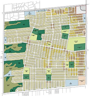 The plan consists of a series of residential neighbourhoods focused around community use facilities such as schools, parks and other amenities. The community has been designed to accommodate approximately 5000 homes.